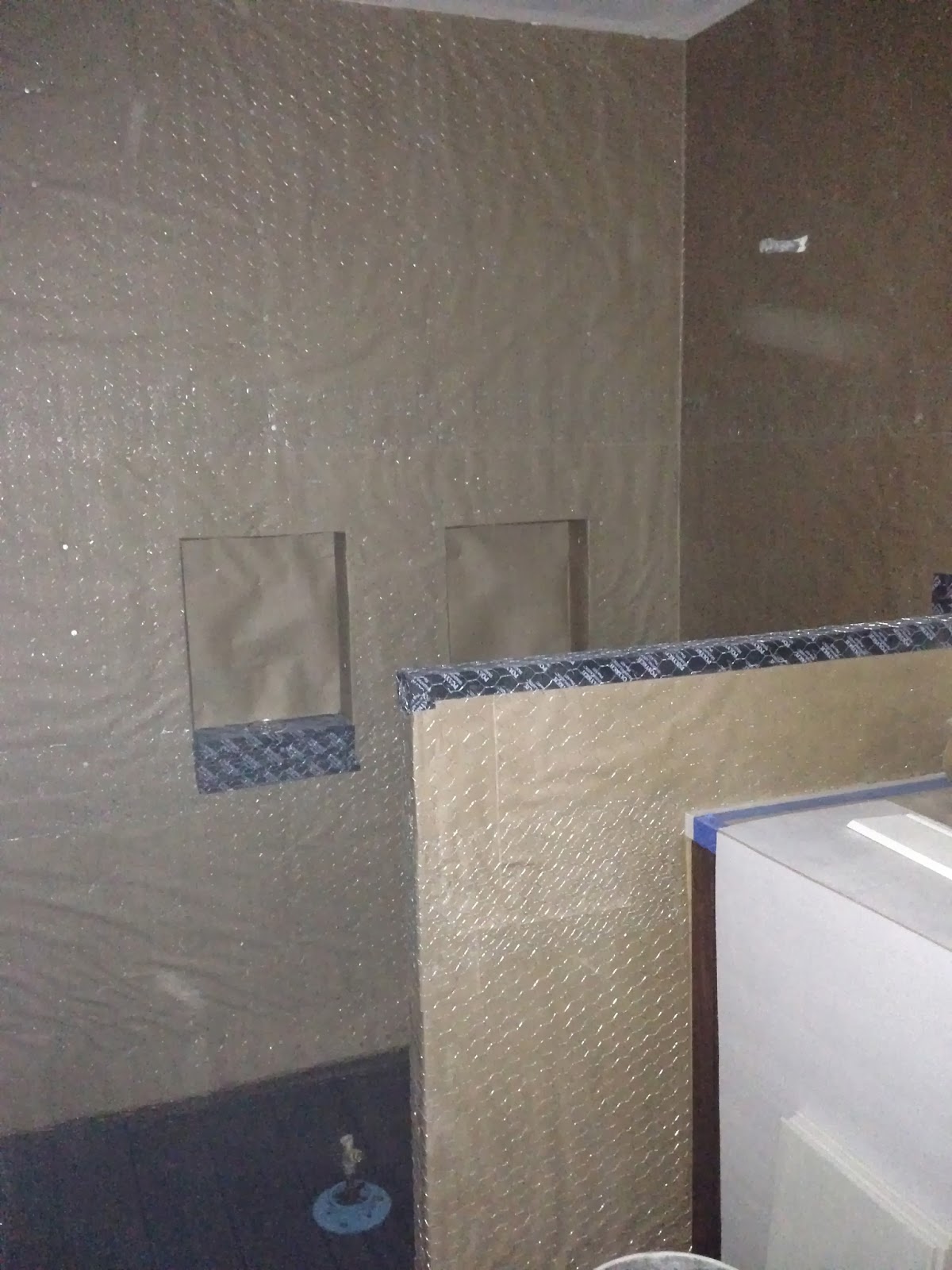 They have prepped the walls for tile. It's some kind of paper/chicken-wire thing probably made for maximized grip.
