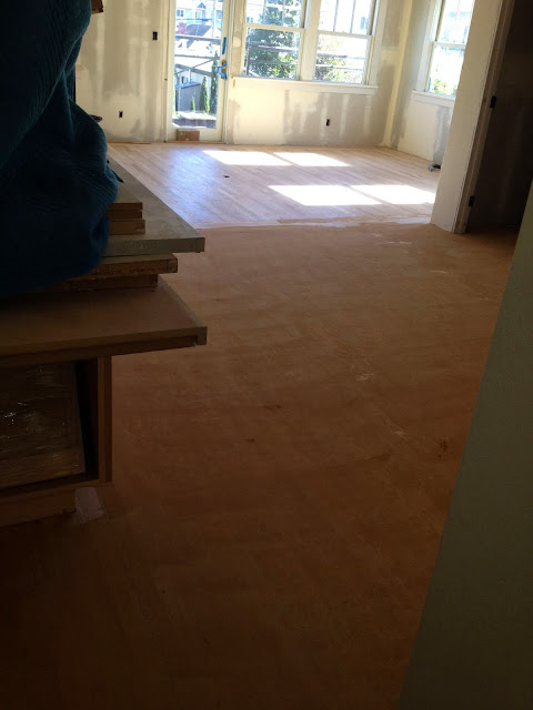 They are going to go upstairs in the great room but not until the floors are done. While the floors are getting finished, we are not going to have stairs for a couple of days. That means we are going to have to go outside and down the driveway to access the kids' room. Fortunately, the inconvenience is only going to last for a day or two. Then it should be all downhill from there . . . until the house starts smelling of paint!